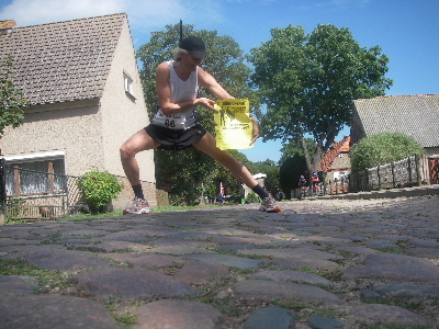 und zu erreiche ich einen kämpfenden Müritzläufer. Der eine hat sich das Shirt vom Leib gerissen, glänzt vor Schweiß, der andere trabt kämpfend, in