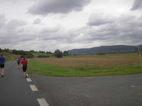 Da sehe ich vor mir Manuela, Zugläuferin für 4:30 h. Auch die Wiedersehensfreude mit Stefan ist groß, der mit ihr läuft, so dass ein kleines Schwätzchen sein muss. Den kurz aufkeimenden Gedanken, mich der Gruppe im 4:30 h-Takt anzuschließen verwerfe ich dann aber doch ganz schnell und bin auch schon verschwunden.
