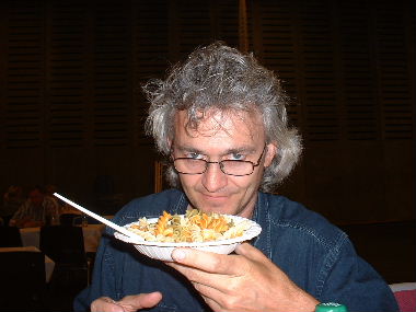 Die Nudelparty in der großen Halle ist im Gange.