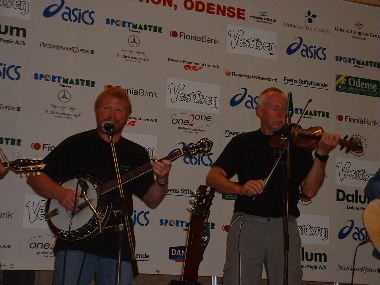 ...fiddelt fröhlich vorne auf der Bühne.
