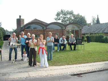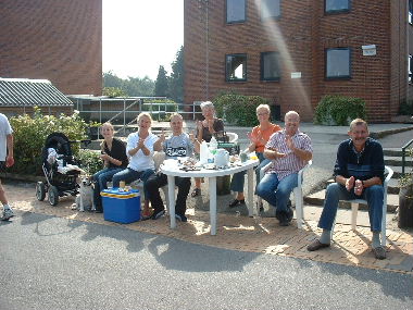alles ist offen, die Dänen sitzen in Campingstühlen zu zehnt zum