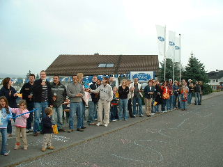Schwaben vor dem Wein/Sekt-Ausschank (2 € oder 1 Bottwar-Taler das Glas).