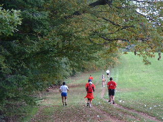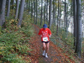 Läufer (in der Ferne) vor dem Wald |