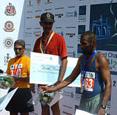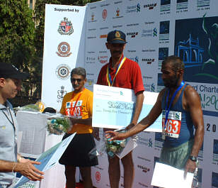 Siegerehrung des schnellsten Veteranen beim 3. Bombay Marathon - Es war der Autor selbst |