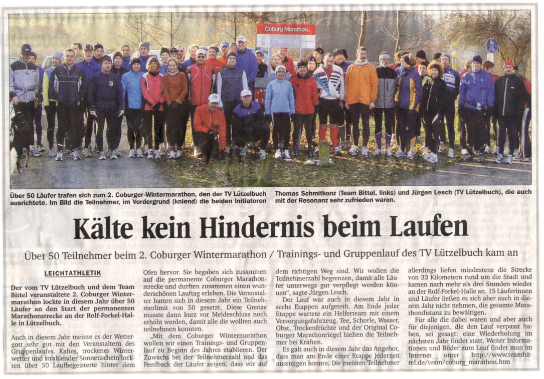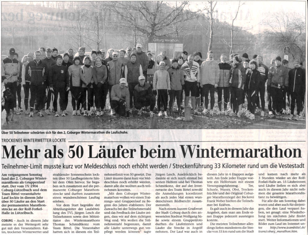 Berichte und Bilder zum 2. Coburger Wintermarathon als Gruppenlauf