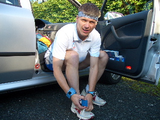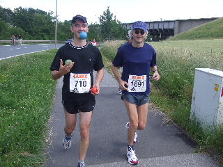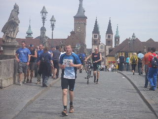 21.07.2007 Coburger Run & Bike Marathon - Bildbericht von Thomas Schmidtkonz Die Spielregeln waren: Jeweils ein Teammitglied lief und der Partner fuhr Rad. Beide konnten sich dabei beliebig oft abwechseln. Beim Wechseln musste das Rad vom Radfahrer zum Läufer direkt übergeben werden. Die Endzeit wurde gestoppt, wenn der letzte der beiden die Ziellinie überquerte. Letztes Jahr gingen wir es sehr gemütlich an und lieferten uns erst zum Ende einen harten Fight mit dem Team Bergstraßenkrimi um den letzten bzw. vorletzten Platz. Aber wir mussten wir uns als letztes Team geschlagen geben. Dieses Jahr wollten wir daher die rote Laterne an ein anderes Team abgeben und deshalb die Sache von Anfang an ernsthafter angehen. |