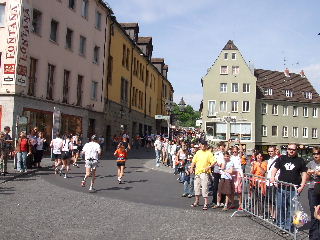 Alles dabei, nichts vergessen, schon finde ich mich im langen Startfeld wieder. Ich treffe auch heute ein paar Lauffreunde, die ich grüße. Nicht weit nach dem Start sehe ich im dichten Gewimmel ein typisches orangenes Nürnberger Shirt, erkenne Cornelia darin und wir laufen (exakt gleiches vorhabend) bis um Halbmarathon zusammen. Na ja, nicht die ganze Zeit, denn ich bleibe oft zum Fotografieren stehen und hole dann langsam wieder auf. Irgendwie habe ich das Gefühl nur rote Coburg-Läufer um mich zu haben.