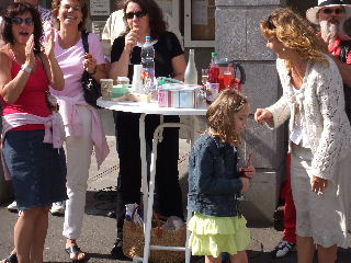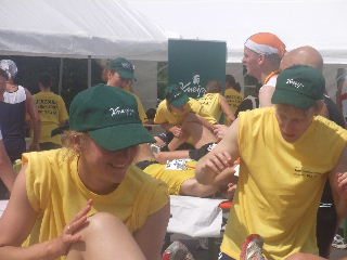 Lächelnder "Gegenverkehr" an der Verpflegungsstelle