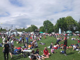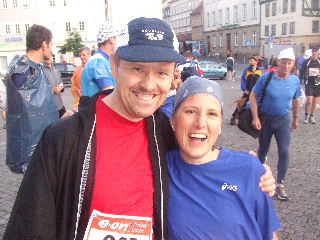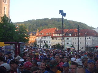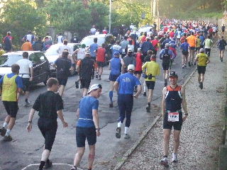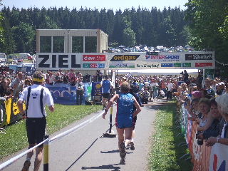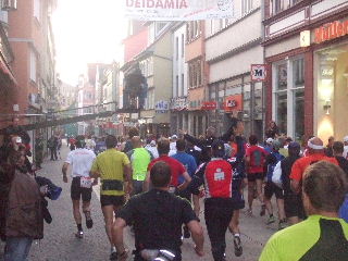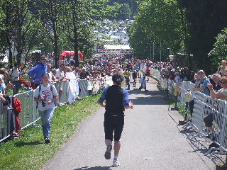 ...vor dem Zieleinlauf (links: Marathon und rechts: wir) |