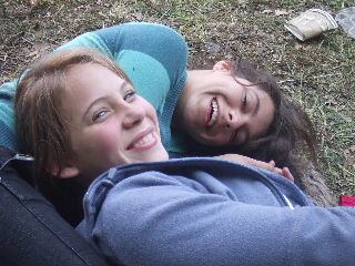 Chantal + Freundin erholen sich (lachend) vom Walken...