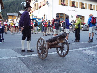 Böllerschuss aus einer kleinen Kanone auf die Strecke geschickt. Die