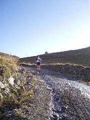 schmalen Bergpfad, dann auf einem breiteren Fahrweg. Ich freue mich über