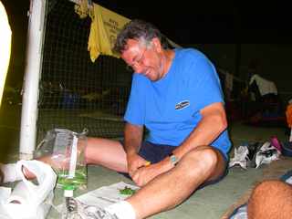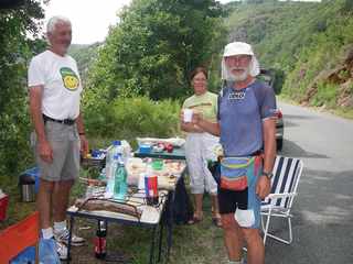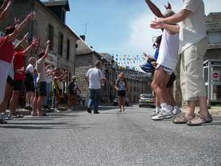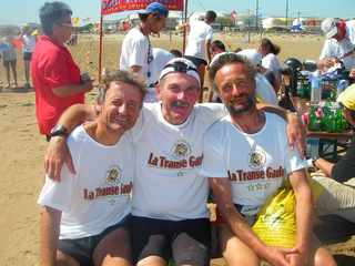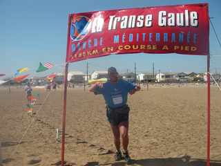 Olaf berichtet.... Transe Gaule, was ist das? Ein Paradigma für Kurzstreckenläufer? Für Ultraläufer ein Begriff, es ist einer der ganz wenigen Läufe fast durch ein ganzes Land. Durch Frankreich. Von Roscoff nahe Brest bis Grussian bei Narbonne, 1.150 km, 13.000 Höhenmeter bergauf und, weil von Meer zu Meer, auch 13.000 Meter wieder bergab. In 18 Tagen. Manchmal gibt es lange Etappen, bis 75km und manchmal auch recht kurze, 49 km (nur). Da haben auch die Langsameren der Läufer dort mal einen kurzen Nachmittag frei. Zum Wäschewaschen, Schlafen oder anderen alltäglichen Dingen, die auf weniger als das vermeintlich notwendige Minimum reduziert werden müssen. Für die philosophische Frage, ob vielleicht ein Urlaub in einem all-inclusive-Hotel nicht die preiswertere, erholsamere und daher auch erstrebenswertere Variante für 3 Wochen wäre, gibt es genug Zeit zum Nachdenken. Z.B. bei einem der 3 sehr feuchten Regentage, Regen von früh bis spät. Am heißesten Tag, 37°C, sehr schwül, fällt das Denken schwer, jeder kämpft gegen Dehydrierung, Sonne und am Ende wohl auch gegen sich selbst. Aber das ist Läuferalltag. Das ist in nahezu jedem x-beliebigen Laufmagazin beschrieben. Das gesamte Prozedere: Anreise: von Nürnberg 1.500 km. Das zieht sich, ob mit Auto oder Bahn. Übernachtung: In Hallen. Manchmal schön, sauber und groß genug für alle, gute Sanitäranlagen. Manchmal auch das Gegenteil. Aber: das ist nicht wichtig, man schläft meistens gut. Auch hat mich nicht mehr gestört, wenn meine Laufsachen nach einem Kurzwaschgang über Nacht nicht trocken werden. Dann gibt es eben frische Sachen. Irgendwie wird das ganze Zeug dann eben doch trocken und man kommt mit erstaunlich wenig Wäsche aus. Früh morgens: 05:00 Uhr wecken, Sachen packen: Schlafsack, Luftmatratze, frische Wäsche, Schmutzwäsche, Salben, Cremes, Schuhe. Alles verschwindet in Minuten in Plastiktüten und dann in der Reisetasche. Ein kleines Frühstück. Fertig machen zum Laufen, 06:15 Uhr Briefing, 06:30 Uhr ist Start. Ausnahme: letzter Tag. Aufstehen 04:00 Uhr, Start 05:30. Damit wir im Mittelmeer länger baden können. Der Lauf: Früh geht’s im Halbdunkel los, der Betreuertross überholt die Läufer langsam und das Feld zieht sich auseinander. Man kann den ganzen Tag alleine laufen, wenn man es möchte. Kein Tag ist gleich. Mal der höchst Pass (Col de Legal, 1231 m), mal die längste Etappe (75 km), die Etappe mit den meisten Höhenmetern (1350 m), die landschaftlich schönste Etappe, der Tag mit dem meisten Regen, der Tag mit den wenigsten Asphaltkilometern (es geht viele km am Kanal entlang, ähnlich dem König Ludwig Kanal, eine in Franken gut bekannte Laufstrecke). Der eine Tag mit mehr Freude am Laufen, der andere Tag mit etwas weniger. Ein Tag mit Hochgefühl bei schnellem Lauf, ein anderer vielleicht mit Schmerzen. Die Finish Line: JiBi, der Organisator, pfeift mit seiner Trillerpfeife und kündigt die Ankunft eines Läufers an. Man läuft durch einen Zielbogen. Die Zeit wird auf eine Tafel geschrieben, es gibt etwas zu trinken und das Abendprogramm beginnt. Umgekehrte Reihenfolge des Morgenprogramms, Ausnahme das Essen, besonders wenn es vorher eine Einladung des Bürgermeisters gibt (passiert manchmal). Start ist genau an der Stelle, wo der Lauf am Vortag beendet wurde. Das Ende: Eigentlich ist der Bericht jetzt am Ende. Der interessierte Läufer kann auf der Internetseite des Transe Gaule alles nachlesen. Die Strecke , die Ergebnisse und noch vieles mehr. War das Alles? Aber irgendetwas fehlt noch in diesem kurzen Bericht.