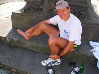 Marathons laufen – es fehlt die Erkenntnis. Ich habe mich an das Hallenleben gewöhnt. Vorher war das unvorstellbar für mich, nach ein paar Tagen hat es mich sehr, sehr genervt, aber dann war es egal. Eigentlich ist die Erkenntnis, wie wenig man zum Leben braucht, nicht neu. Jeden Tag laufen: Weitere Erkenntnis: der Körper gewöhnt sich daran. Auch wird langsamer gelaufen als bei den schnellen Marathons. Laufbedingte Verletzungen kann der Körper mit etwas Glück, guter Unterstützung und einem eisernen Willen wegstecken. Mehrstündiges Kampfhumpeln mit 4 km/h oder weniger ist dann zwar die Ausnahme, gehört aber bei manchem Läufer dazu (nicht nur bei mir). Das ist die Phase, in der man darüber nachdenkt, wo der nächste Bahnhof ist. Aber: Man kann sich auf jeden Tag freuen. Schlechte Wegstrecken, physische + psychische Tiefpunkte müssen überstanden werden, dann steht den Highlights des Ultralaufsports nichts mehr entgegen. Highlights: - Sehr schöne Streckenabschnitte, am Kanal, in den Bergen des Zentralmassives, auf einsamen Landstraßen durch schöne Landschaften, an tausenden von Kühen vorbei und zum Baden einladenden Seen. - Gemeisterte Herausforderungen, wenn es am Morgen z.B. erst mal 26 km nur bergauf geht und man sich beim Anstieg richtig gut fühlt. - Stimmungsvolle Momente, wenn z.B. am Morgen Hochnebel – oder schon Wolken? - einen Gebirgskamm mit einzelnen Bäumen in einer fantastischen Silhouette erscheinen lässt, in die man als Läufer eintauchen darf. Oder wenn sich in sternenklarer Nacht bei Mondschein eine Schar von Menschen den Berg nahezu geisterhaft auf einsamer Straße „hinaufschiebt“, um einen geilen Sonnenaufgang zu erleben. - Das Supergefühl beim Start, einen Tag laufen zu dürfen und nichts auf der Welt kann diesen Tag stören. Probleme aus der Heimat können mental bearbeitet werden, wenn man sich nicht zu 100 % der Strecke widmen will. Allzu oft ändert sich dann die Priorität der kleinen Wehwehchen, die im normalen Leben auftreten und man kann sich wieder zu 100 % dem Laufen widmen. Der medizinische Aspekt: Laufen, auch in dieser extremen Form, tut gut. Übertreibung (= zu schnell) bestraft der Körper sehr schnell, nicht nur ich habe das spüren dürfen. Das ist der große Unterschied zum „normalen“ Läuferleben, da wird fast immer zu schnell gelaufen. Politik: Die Läufer sind – wie soll’s anders sein – den Politikern, schon entscheidende Schritte voraus. Die Politik sollte den Sport mehr unterstützen, da er eine hohe Völker verbindende Wirkung hat. Nicht nur bei einer Fußballweltmeisterschaft. Der Tipp: Absolut empfehlenswert. Ob