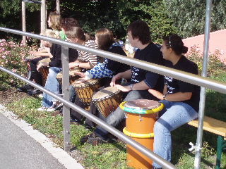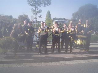 einmal wartet die Brücke nach dem Volksfestplatz. Sambatrommler geben