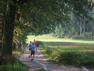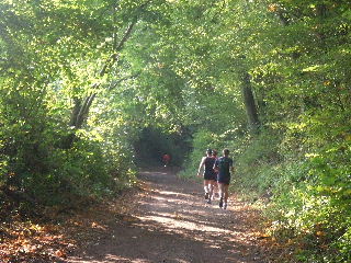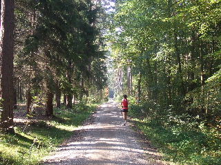 jetzt mit einem jungen Halbmarathoni durch den kühlen dichten Wald, auf