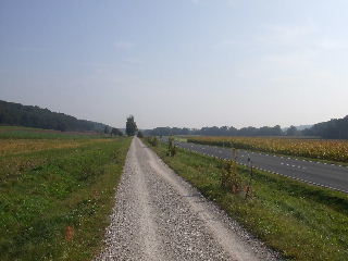noch oft im Schatten, viel Wald. Die wenigen langen Geraden am Radweg