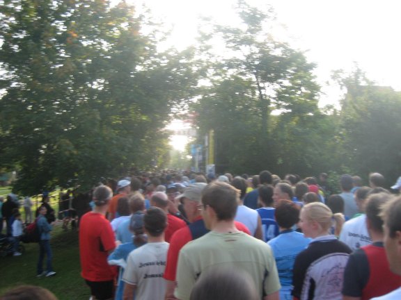 Ich hatte erwartet, dass der Marathonstart in einem kleinen übersichtlichen Starterfeld erfolgt. Aber mit Ausnahme der Staffelläufer, starteten doch alle Langstreckler zusammen. Dabei kam ein ansehnliches Feld zusammen.
