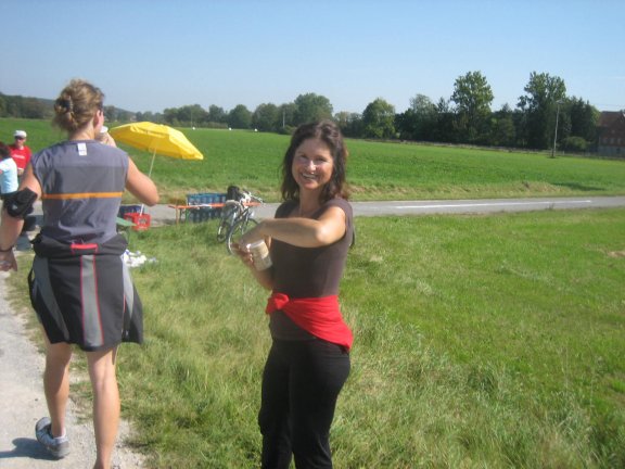 Endlich, der letzte Verpflegungsstand wenige Kilometer vor dem Ziel, und überall sind immer freundliche Helfer(innen).
