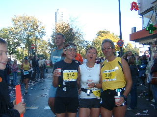 Familie und Freunden, die uns fast ins Ziel klatschen und pfeifen! Wir