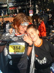Schön, dass mich mein Sohn im Ziel erwartet... |