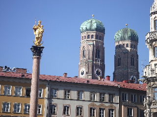 Münchens Wahrzeichen: Mariensäule und Marienkirche |