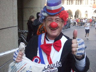 Im Rahmen des München Marathons sammeln "Pumuckl" Dietmar Mücke