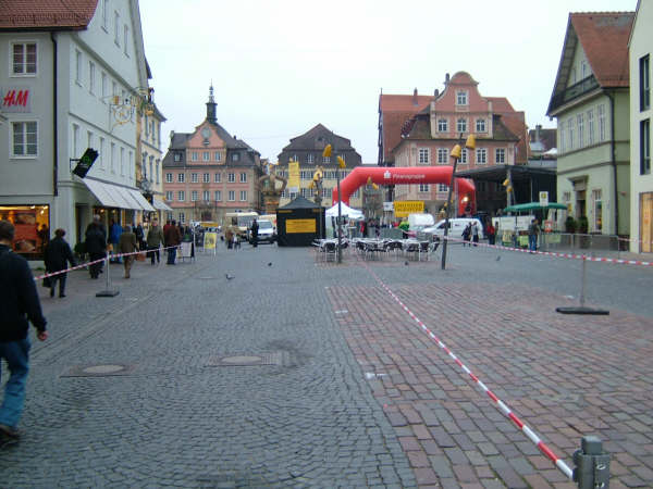 wenige Läufer. No no. Beim Abholen der Startunterlagen im neuen Ort
