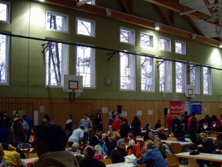 Der parkplatz vor der seehofhalle ist schon zugeparkt. |