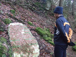 Ein Stein beschreibt Geschichte, die hier stattfand