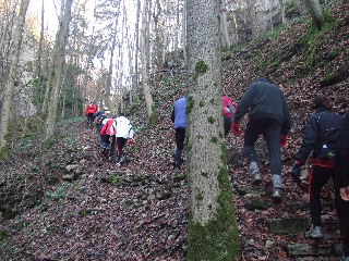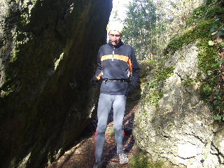 Thomas war wieder einmal "Master of the Day" und übertraf sich selbst. Wir durchquerten Höhlen, Schluchten, Wälder. Wir blickten von steilen Felsen in enge Täler, hatten viel Spass beim Klettern, Traben und beim Geschichten erzählen... Eben ein Spaß- und Genuss-Marathon.