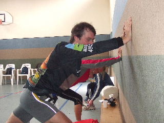 Aus den kühlen Wind in die Halle: Stretching "RosaB" |