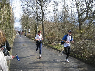 Ich biege links ab. Schlussspurt. Die Halbmarathonis gehen auf die