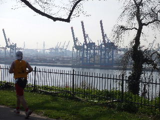 Wir verlassen den Marathon: Hamburgs Wahrzeichen... |