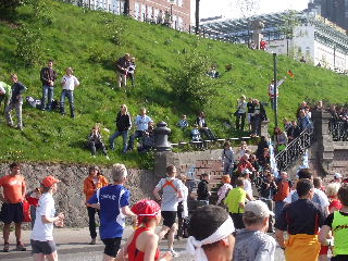 Zieleinlauf. Bei km 37 steht nach längerer Pause noch einmal unser