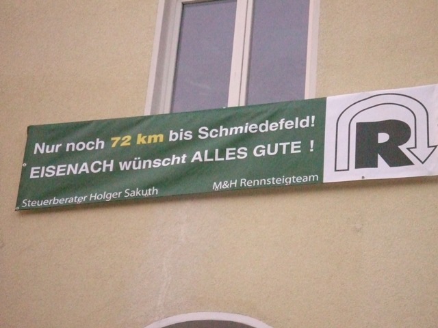 Der Drachentöter über unseren Köpfen: "Rennsteig, wir schaffen das!" |