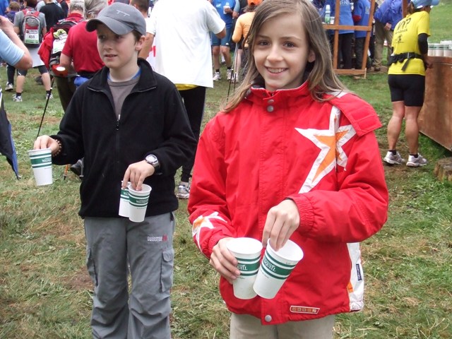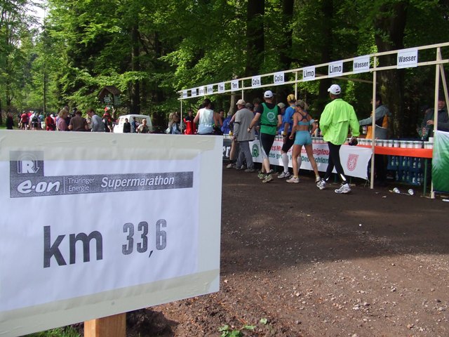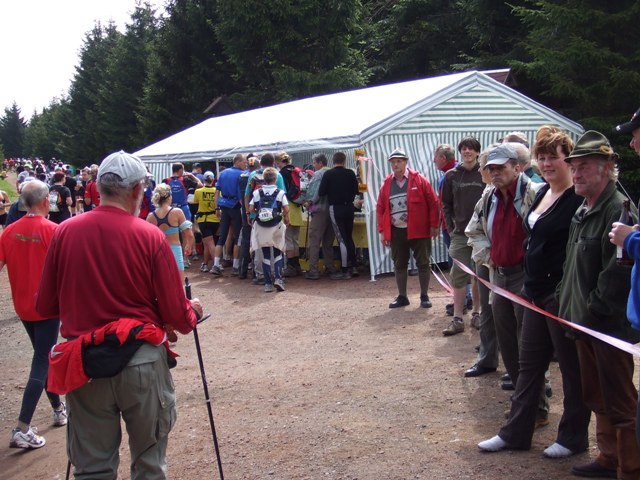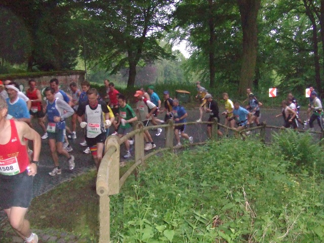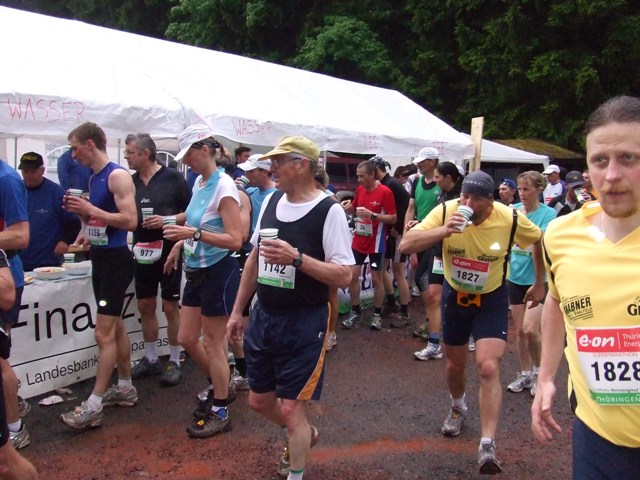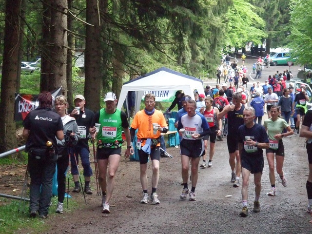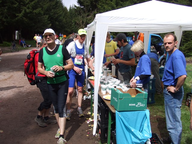 km7: die erste Verpflegung. Wasser, Cola? Und Gedrängel... |