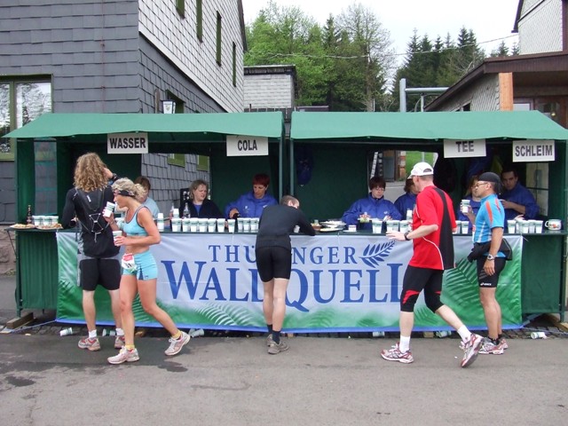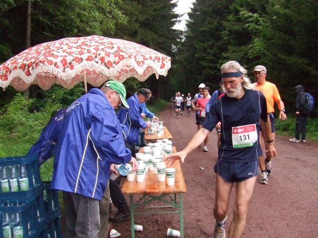 km60: Obst, Power Gel, Vita-Cola? Ich nehme Wasser. Es ist kühl aber