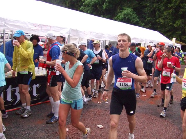 Km13: es beginnt zu regnen. Oh oh... (Läuferstudie: Becher greifen) |