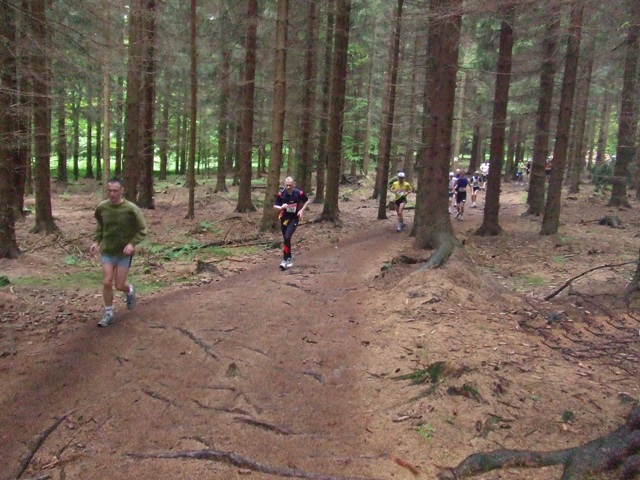km3: im dunklen Wald. Es ist kühl, doch viele schwitzen schon... |