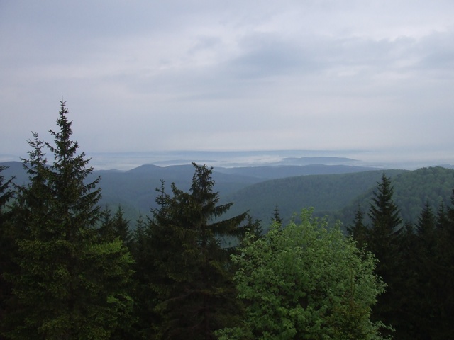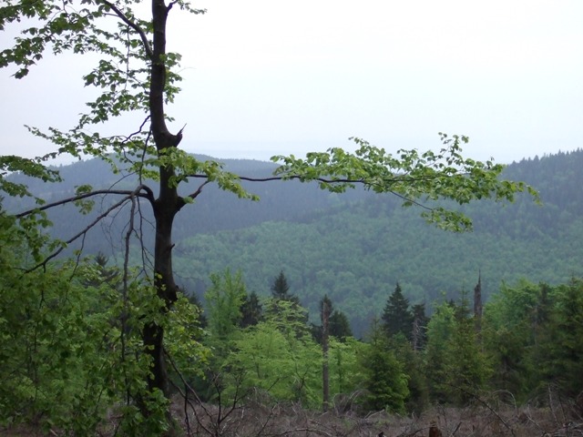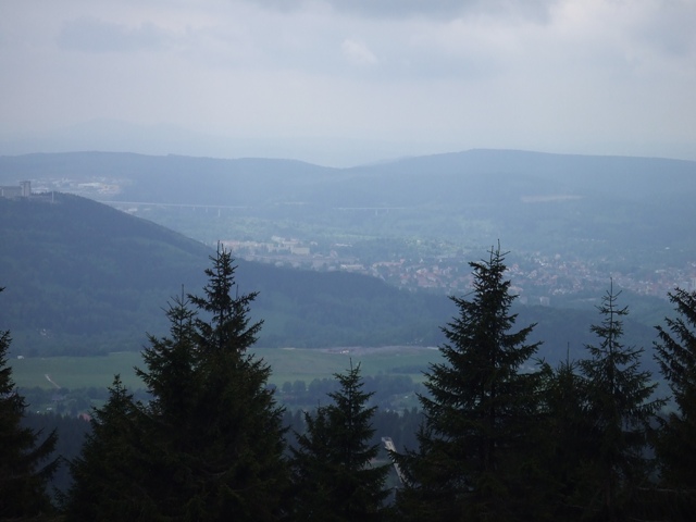 Kurz vor dem Gipfel: schöner Fernblick auf Suhl |