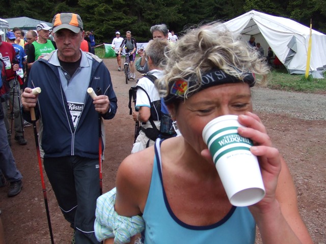 km18: Verpflegung: mancher stürzt das Wasser hinunter, 10sec Zeit
