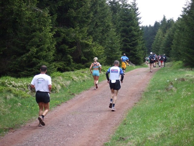 Heike läuft immer noch konstant, viele gehen. Kurz bergab, dann...