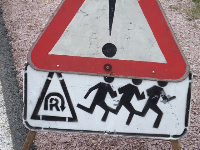 Das Schild ist klar: "Rennsteigläufer kreuzen die Strasse" |