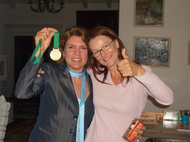 Marathondistanz geschafft! Heike ist noch gut drauf... |