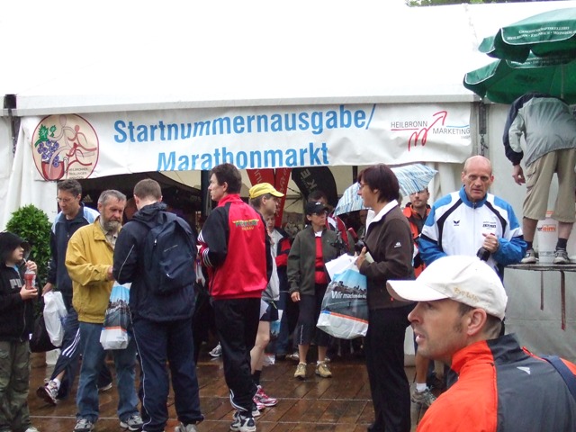 Im Zelt die Unterlagen abholen, und die Flasche Wein. |