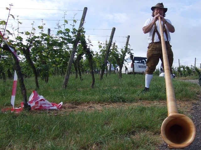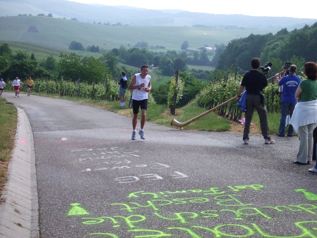 km10: das fränkische Alphorn läutet den 1. Gipfel ein |