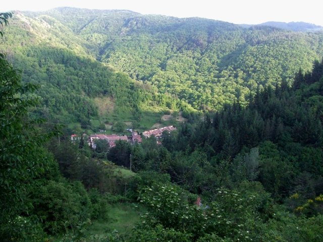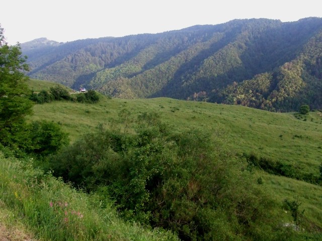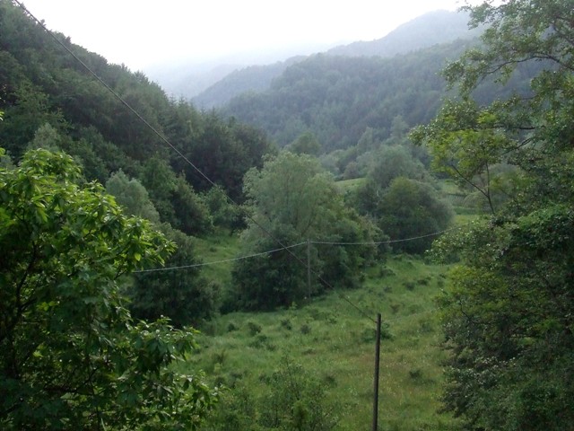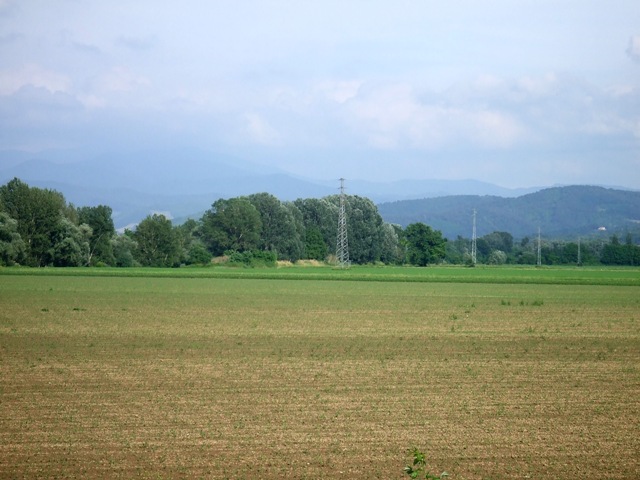 Ende der kleinen Ortschaft. Die sehr grüne Natur ruft uns wieder. Es
