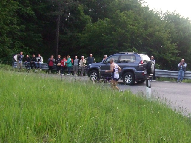 Wir nähern uns der Verpflegungsstelle (und viel Publikum): Flieg