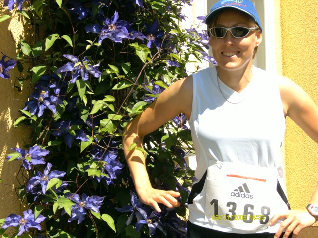 Petra gut gelaunt vor dem Start zu ihrem 2. Halbmarathon |